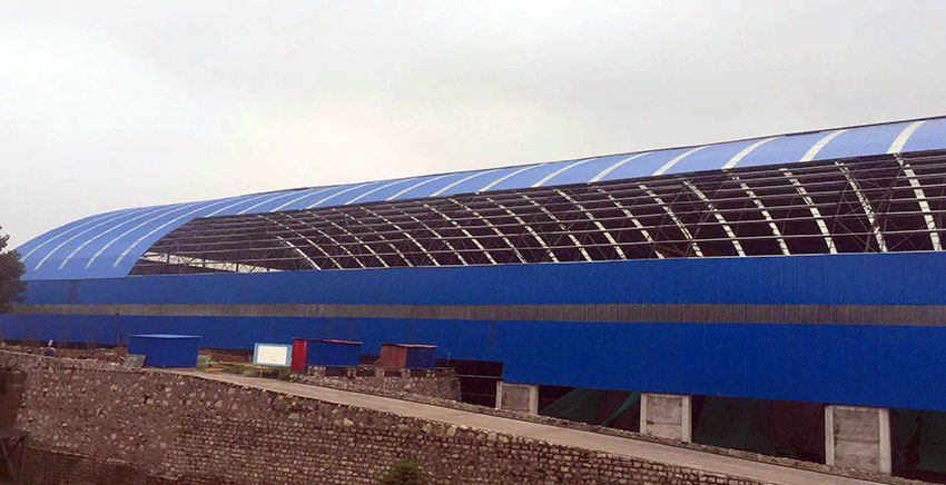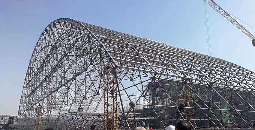 網(wǎng)架是由大量的鋼件按照不同的網(wǎng)絡(luò)形狀連接而成的網(wǎng)絡(luò)空間結(jié)構(gòu)。一般網(wǎng)架的構(gòu)成包括三錐體、三棱體、正方體等,再由這些基本的單元組成建筑的四邊形、六邊形或者其他任何形體。由網(wǎng)架搭建成的建筑具有空間受力小、剛度大、重量輕、抗震性能好等一系列的優(yōu)點(diǎn)。