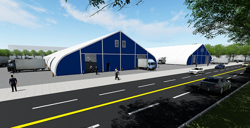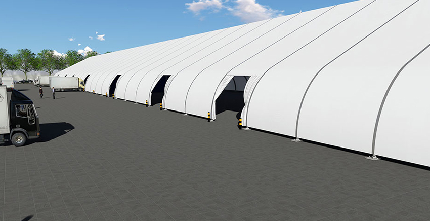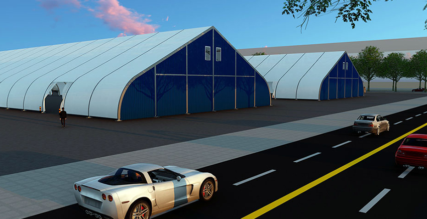 桃型篷房的結(jié)構(gòu)采用單元組合式設(shè)計(jì),長度可按5米間距增長或減小。支架材料采用高強(qiáng)度鋁合金(材質(zhì)6061-T6),篷布為阻燃的雙面PVC合成纖維布。