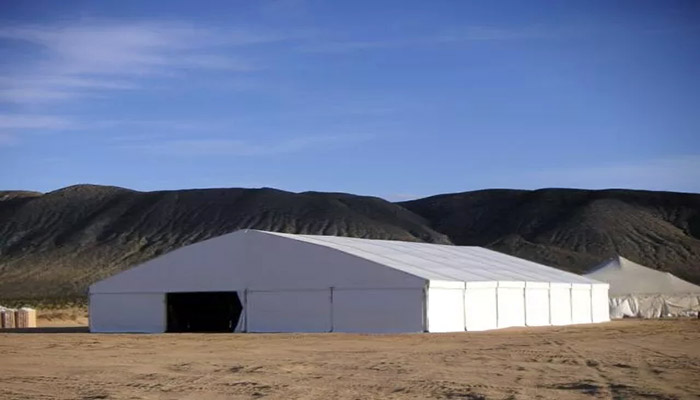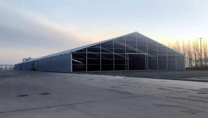這些問題,對于高山環(huán)保篷房來說“都不是事”——首先高山環(huán)保系列篷房的跨度可以根據(jù)需要做到50米以上,邊高在15米以上,頂高20米以上,可以開口安裝巨型大門,吊車、重卡等大型裝備輕松進出。更寶貴的是內部無梁無柱,盡可輾轉騰挪,大大提高工作效率。
