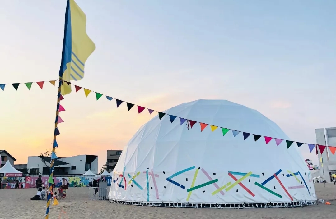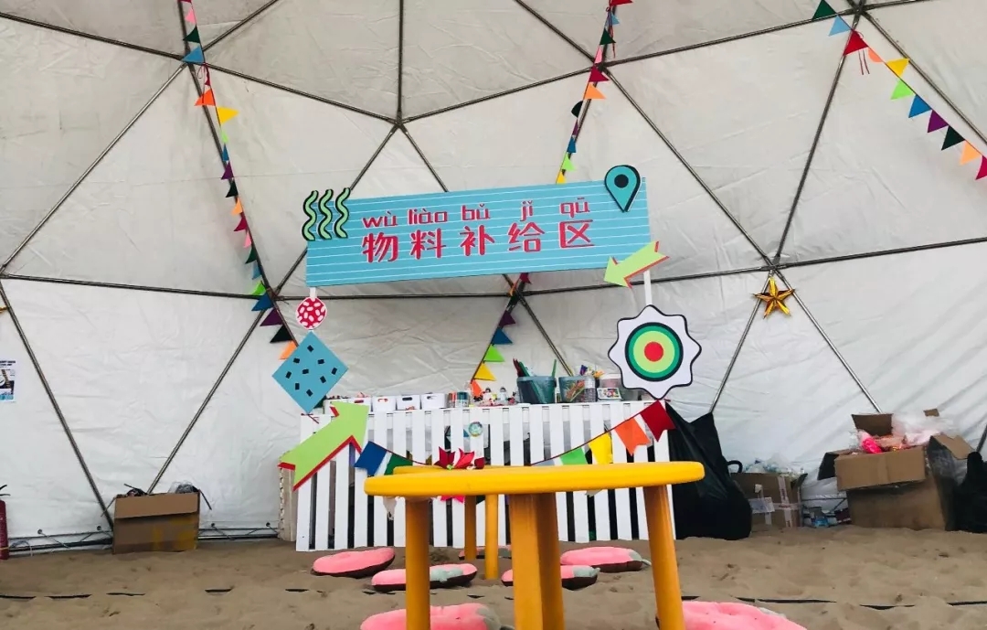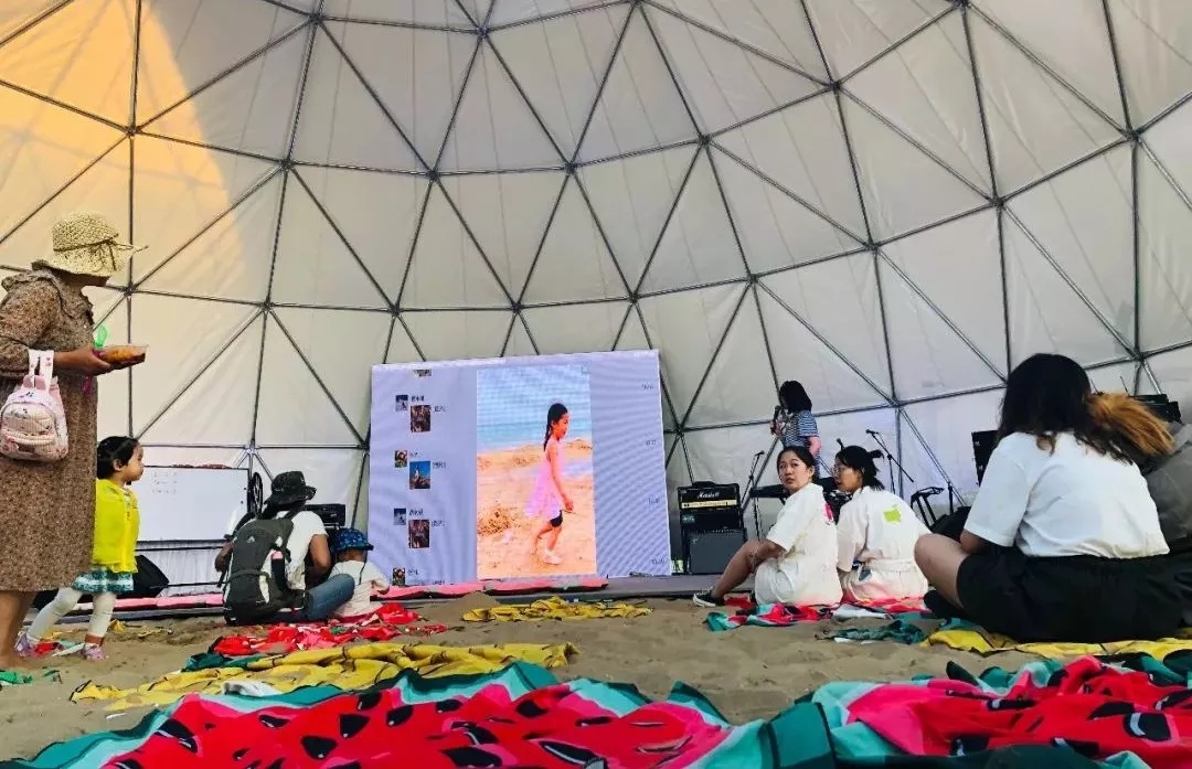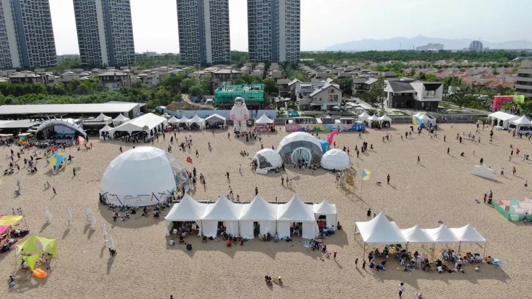 綿延數(shù)百米的黃金沙灘上,在高山搭建的六十余座篷房內(nèi),音樂Live Show,互動藝術(shù)工坊,親子玩樂體驗區(qū),童趣打卡景觀......
