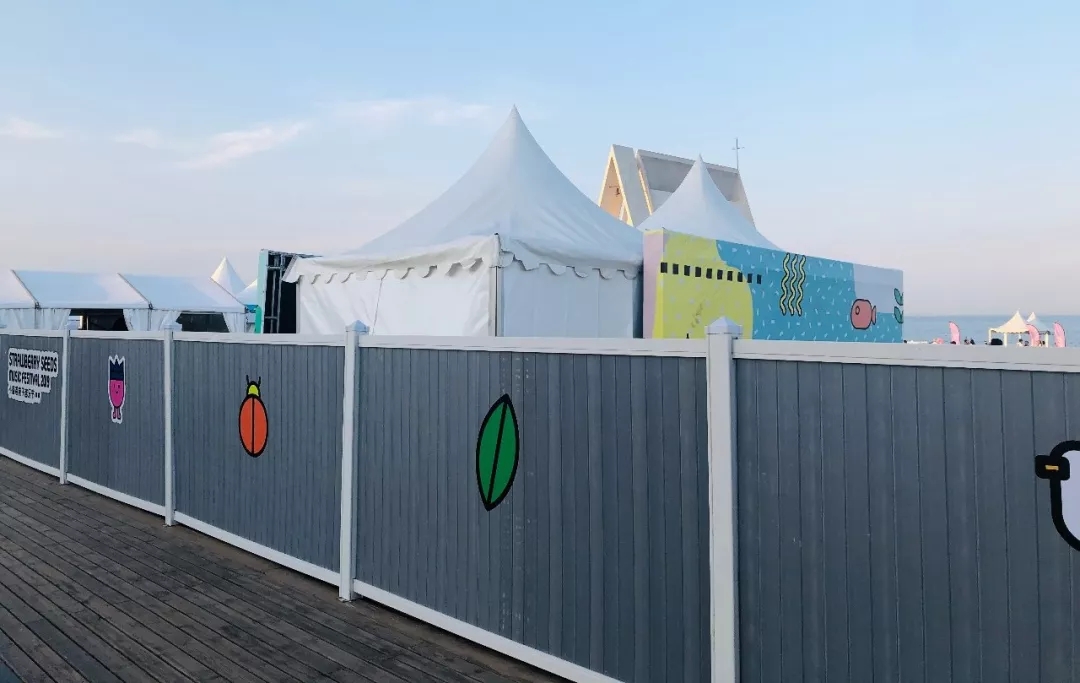為更貼切本屆草莓親子音樂節(jié)主題,高山特在篷房外部制作相關(guān)的廣告圍板,噴繪logo等,用來展示主辦方與商家的標(biāo)識,現(xiàn)場色彩鮮明,童趣滿滿。