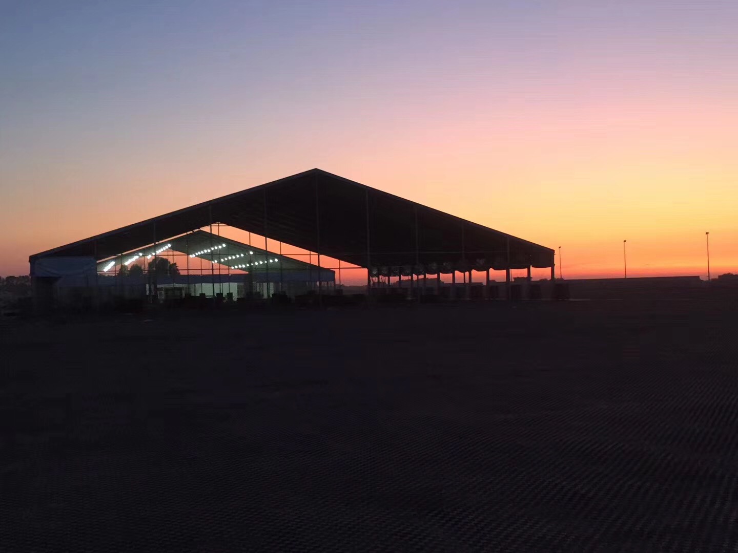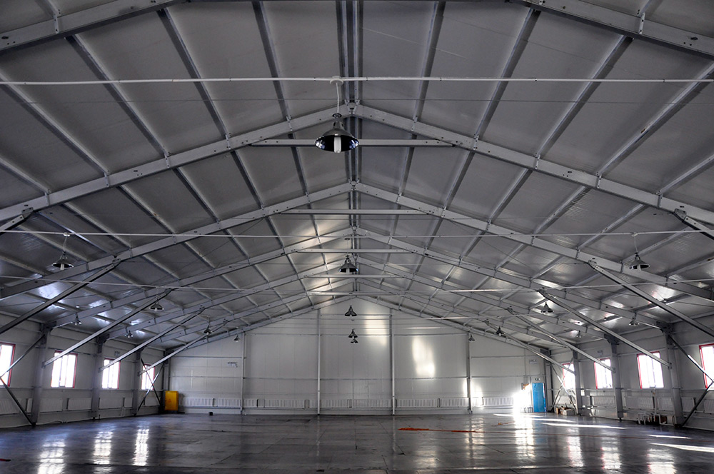 高山環(huán)保篷房屬于裝配式建筑和模塊化生產(chǎn)組合,對(duì)地面要求非常低,地基可根據(jù)實(shí)際情況采用不同的配重方式,數(shù)日內(nèi)即可完成上萬(wàn)平方米的拆裝任務(wù)。