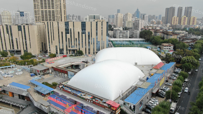 氣膜,是一種全部膜材建筑,內(nèi)部無梁無柱,全部由空氣支撐,全封閉,內(nèi)外產(chǎn)生壓差,通過全自動系統(tǒng)自動調(diào)節(jié),遠程控制等智能系統(tǒng),是新的覆蓋產(chǎn)品,適用于煤場,礦山等大型倉儲,單體面積可達到幾萬平方米,車輛出入自如,超大空間提高了人們的想象力。簡單一句話:就是靠氣吹的。