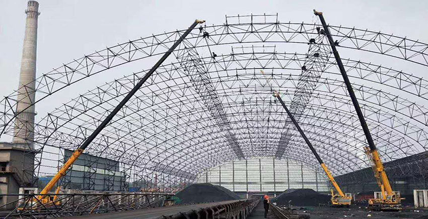 網(wǎng)架是由大量的鋼件按照不同的網(wǎng)絡(luò)形狀連接而成的網(wǎng)絡(luò)空間結(jié)構(gòu)。一般網(wǎng)架的構(gòu)成包括三錐體、三棱體、正方體等,再由這些基本的單元組成建筑的四邊形、六邊形或者其他任何形體。由網(wǎng)架搭建成的建筑具有空間受力小、剛度大、重量輕、抗震性能好等一系列的優(yōu)點(diǎn)。