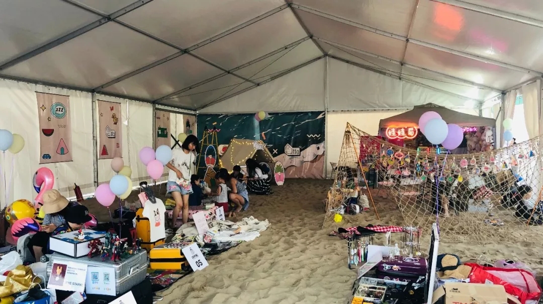 綿延數(shù)百米的黃金沙灘上,在高山搭建的六十余座篷房內(nèi),音樂Live Show,互動藝術(shù)工坊,親子玩樂體驗區(qū),童趣打卡景觀......
