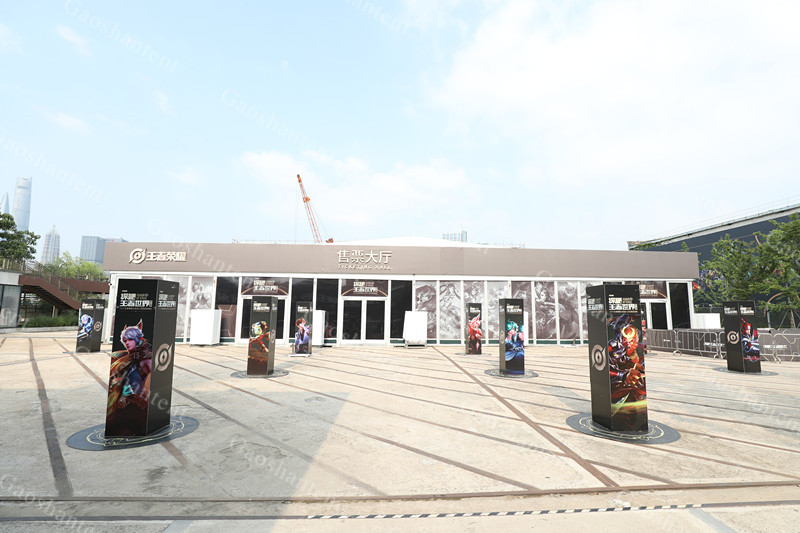 原來,高山的平頂篷房采用8°仰角,先進的漲緊系統(tǒng)取代了雙層吹氣設計,配以新型材料做平行布幔,加上帶有王者榮耀logo的圍欄,整體形成平頂效果,怎么樣?有沒有成功騙過您的眼睛?