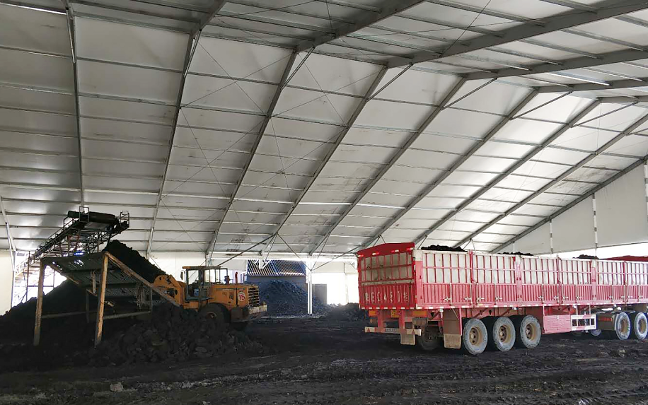 眾多周知,煤因?yàn)楹写罅苛虺煞旨捌渖a(chǎn)加工中涉及的其他化學(xué)物質(zhì),對(duì)于鋼鐵腐蝕非常明顯,傳統(tǒng)的密閉設(shè)施,往往短時(shí)間內(nèi)就生銹、損壞,直接影響了企業(yè)的利潤(rùn)水平和正常生產(chǎn),倉(cāng)儲(chǔ)篷房采用的是高耐腐蝕的篷布及高強(qiáng)度鋁型材,使用年限一般在10年以上,正??梢赃_(dá)到15年。明顯超出鋼鐵結(jié)構(gòu)密閉設(shè)施壽命。